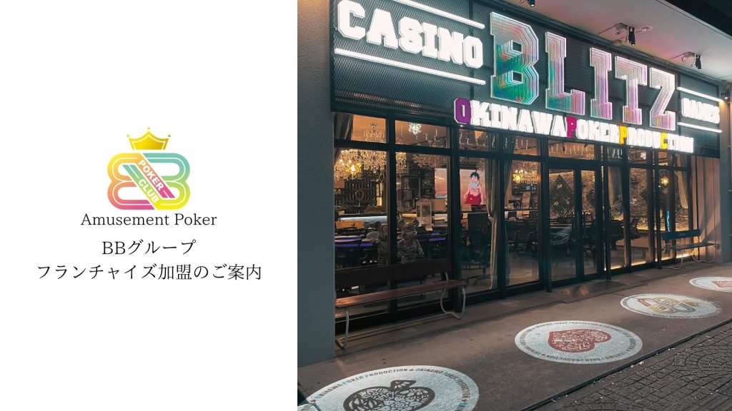 BBグループは、沖縄でアミューズメントポーカー事業を展開し、店舗運営・イベント企画・集客導線づくりまで、現場で培ってきたノウハウを活かしたフランチャイズ展開を行っています。
